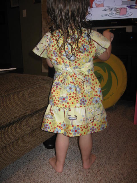 I think this is one my favorite outfits to date! Not only was the pattern, by Patty Young, one of the easiest to make, but the fabric (frolic by Wendy Slotboom for In The Beginning fabrics) is extremely cute, it really brings the outfit to life! Allison is showing it off playing her makeshift drums and playing around the house.
